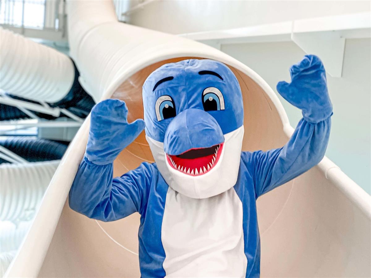 Badulf gleder seg veldig til å møte alle som kommer innom Moldebadet, og han håper de er like glade i å hoppe og dykke i vannet som han!
